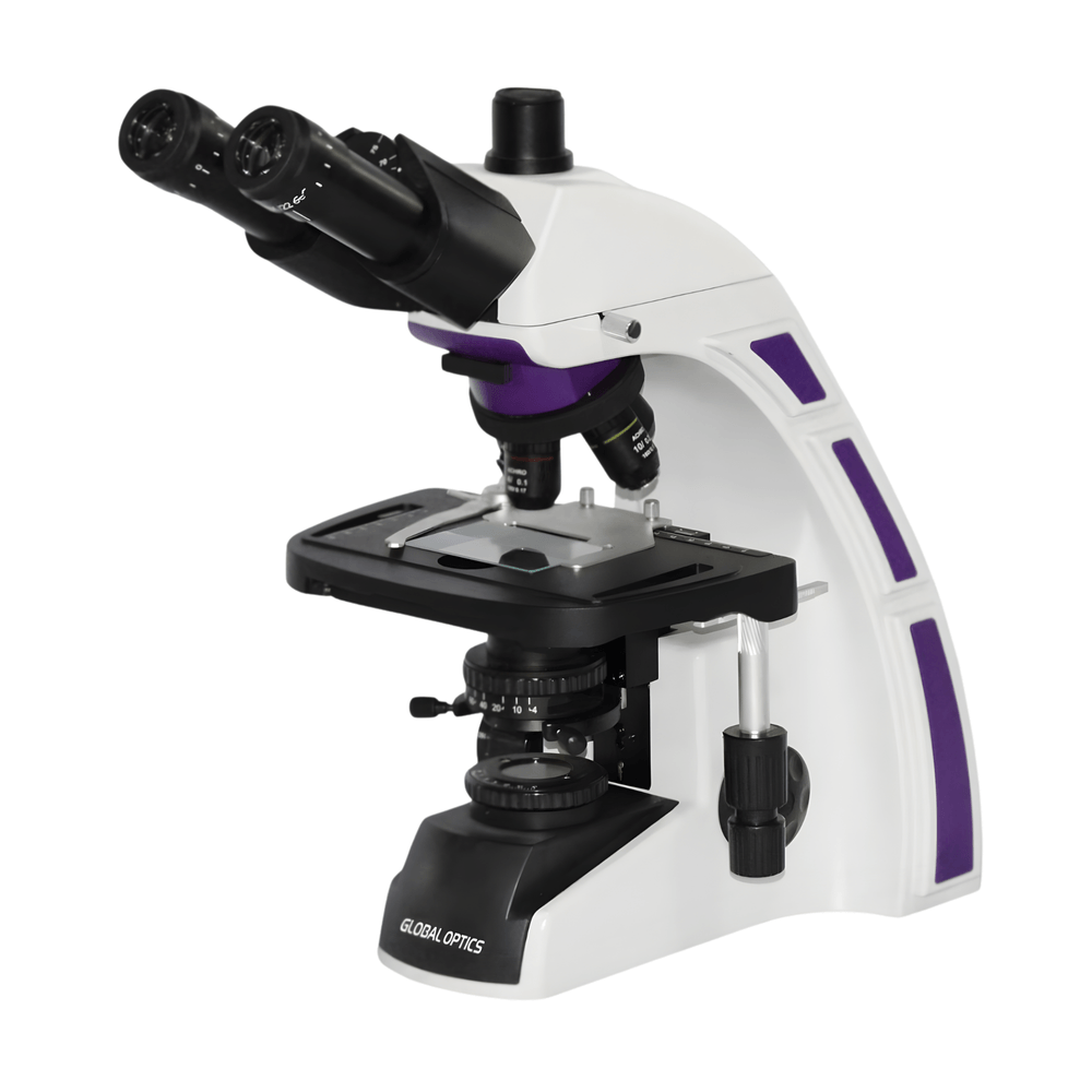 Equipamento profissional com sistema óptico planacromático infinito e iluminação LED Köhler 3W,